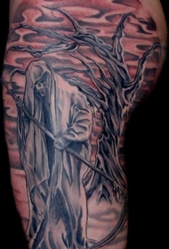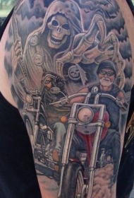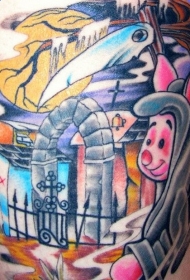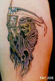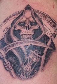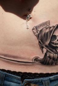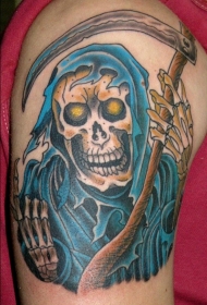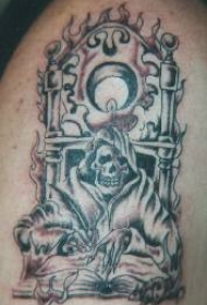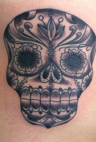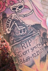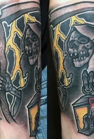 胸部滑稽彩色死亡骷髅与蜡烛卡通纹身图案