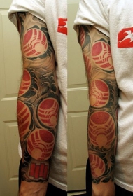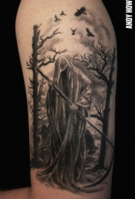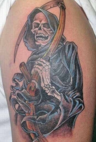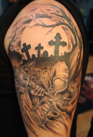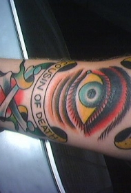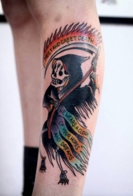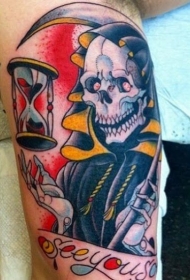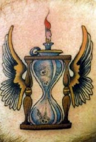 彩色翅膀死亡沙漏和蜡烛纹身图案
