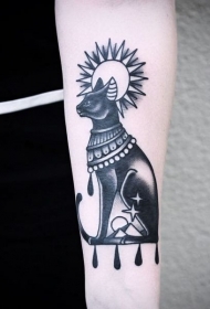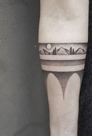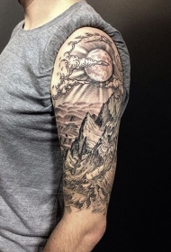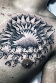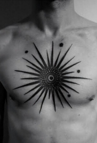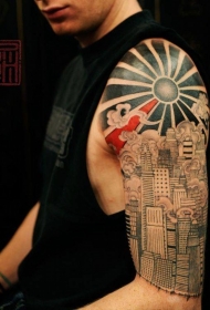 大臂黑色华丽的太阳结合线条城市纹身图案