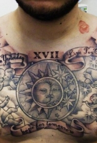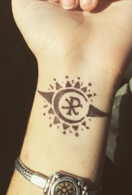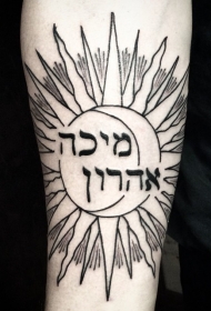 小臂令人印象深刻的太阳与希伯来文字纹身图案