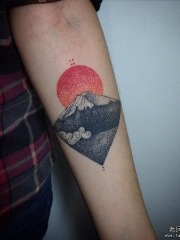 小臂点刺富士山太阳tattoo纹身图案