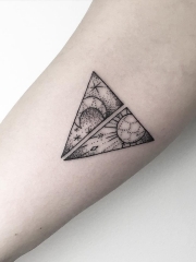 小臂几何点刺月亮太阳纹身图案
