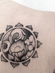 背部点刺太阳花卉纹身图案