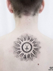 背部太阳图腾点刺线条纹身图案
