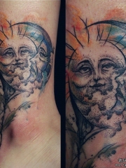 小腿欧美点刺人像太阳月亮纹身图案