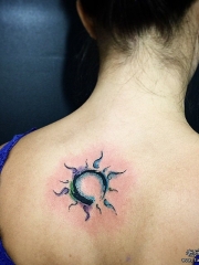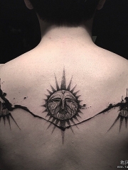 背部泼墨太阳图腾纹身图案