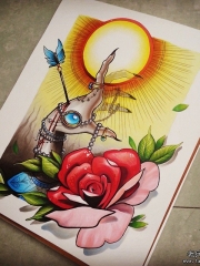 欧美new school手玫瑰太阳纹身图案手稿