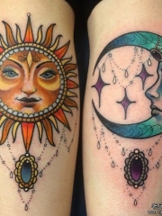 小腿太阳月亮珠宝纹身图案