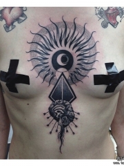 欧美胸部蝴蝶眼睛太阳月亮纹身图案
