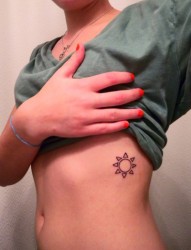女性腰部太阳图腾刺青