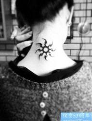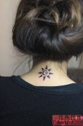 女人后颈潮流经典的图腾太阳纹身图片