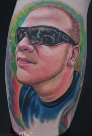 腿部彩色人物肖像纹身图案