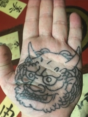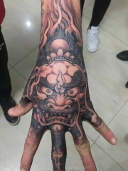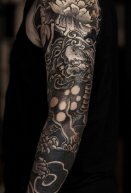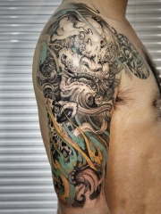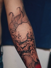 手臂霸气的安家镇宅唐狮彩绘纹身图案