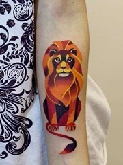狮子头纹身图片 女生手臂上彩色泼墨纹身狮子头纹身图片