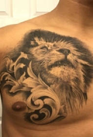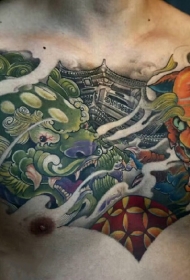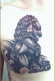 胸部浓情中国风传统唐狮彩绘纹身图案