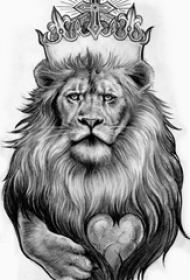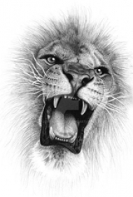 狮子头纹身手稿 黑灰纹身素描狮子头纹身手稿