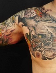 夺人眼球的花臂唐狮纹身图片