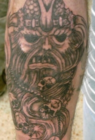 肩部海盗头像与奇怪标志的纹身图案