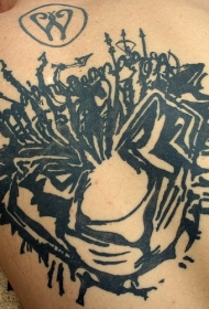 背部黑色老虎头与武器纹身图案