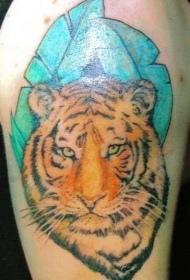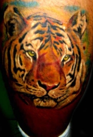 腿部逼真的彩色虎头纹身图案