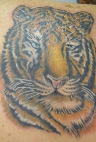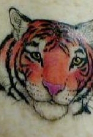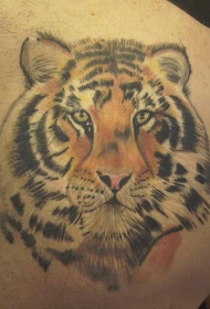 背部彩色老虎头部落纹身图案