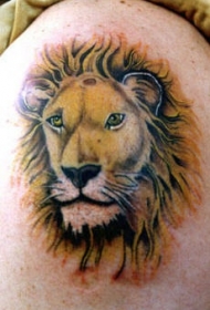 肩部彩色逼真的狮子头纹身图片