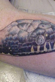腿部彩色逼真的蛇头纹身图案