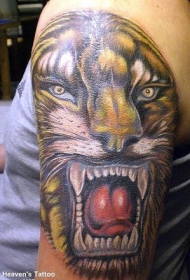 肩部逼真的咆哮的老虎头纹身图片
