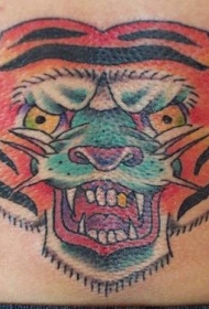 腰部彩色老学校虎头纹身图案