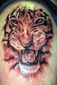 肩部棕色咆哮的老虎头纹身图案