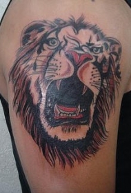 肩部彩色咆哮的狮子头纹身图片