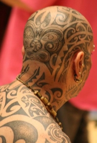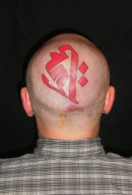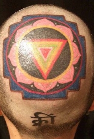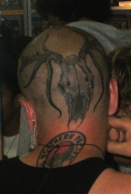男性头部可怕的蜘蛛怪和圆形标志纹身