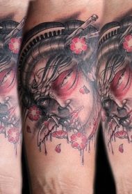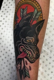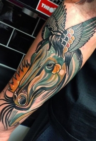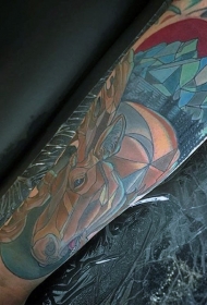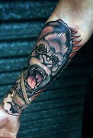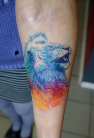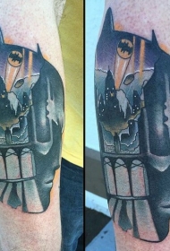 手臂新风格的彩色蝙蝠侠头与夜城纹身