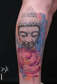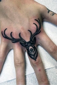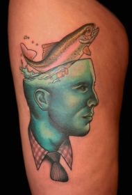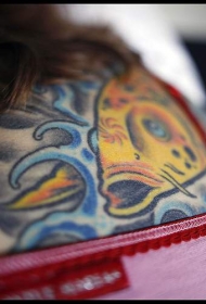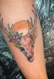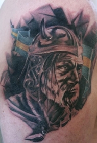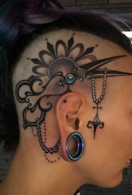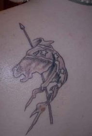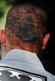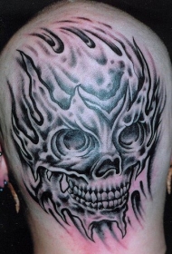 男性头部凶恶的骷髅火焰黑灰纹身图案