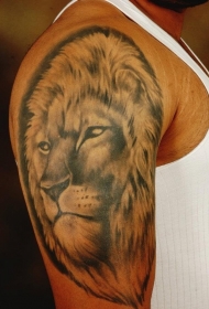男性大臂写实狮子头像纹身图案