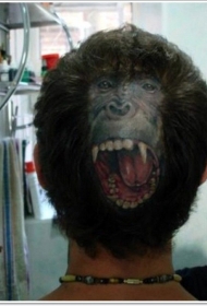 头部非常逼真的原始咆哮猩猩脸纹身图案