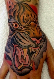 手背old school邪恶的老虎头部纹身图案