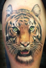 大腿部写实彩绘老虎头像纹身图案
