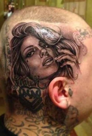 头部诱人女人肖像纹身图案
