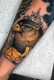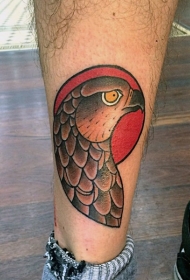 old school彩色鹰头小腿纹身