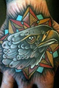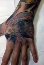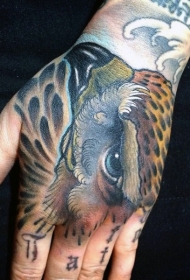 手背彩色自然的鹰头纹身图案