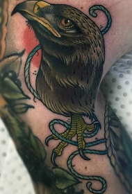 腿部独特设计的鹰头绳子纹身图案
