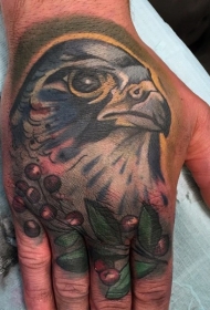 手背鹰头和浆果植物纹身图案