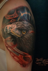 手臂逼真的彩色鹰头纹身图案