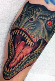 new school写实风格彩色恐龙头纹身图案