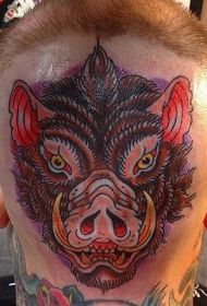 头部old school彩色野猪纹身图案