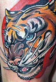 大腿老虎头像彩色纹身图案
