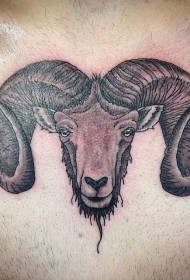 精致的大角山羊头部纹身图案