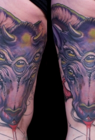 大腿彩绘恶魔血腥的山羊头和蛇组合纹身图案