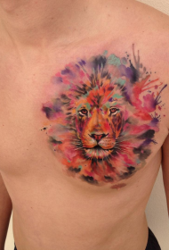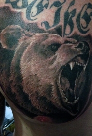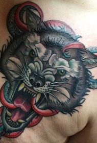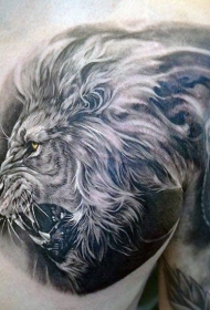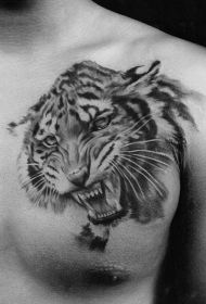 胸部看起来非常逼真的咆哮虎头纹身图案